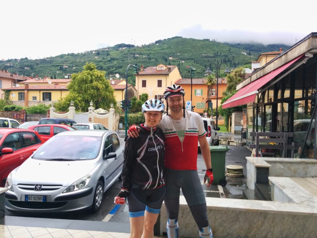 Järgmine linnake oli Camaiore, piirkond hakkas üha enam äärelinnastuma, majad muutusid madalateks pereelamuteks ja ühe hetkel nägime, et ühtegi maja enam tänavalõpust ei paistagi. Kitsas asfalttee keerutas eemal puude vahel mäkke. Juba esimesel kilomeetril sai Kati aru, et tema rattal on midagi viga – teatud käikudega tõusul vajutades, hakkas kett tagakassetil üle viskama. Ma kohe esimesel korral ei reageerinud tema märkustele, sest keti üleviskamine uue keti ja kasseti puhul ei ole loogiline ning arvasin, et ta lihtsalt teeb vigu käiguvahetusel vähese kogemuse tõttu. Mida suuremaks läks tõusunurk, seda rohkem kuuldus aga raginat Kati rattast ning ei jäänud muud üle kui maha ronida ja vaadata milles asi. Kohe oli näha, et kassett istub tirril viltu ja ringi käies viskab silmnähtavalt. See omakorda tähendas, et kett püsis kassetil vaid alumisel 4 hammakal ja ülemisi kergeid käike kasutada ei saanud. Palju õnne meile, mõtlesin omaette. Mismoodi ma suutsin uue kasseti kodus viltu peale panna, sellest ei suuda ma siiani aru saada. Kuidas üldse on võimalik sinna kassetti viltu peale panna? Kõik on siiski võimalik ja kurb oli see, et polnud ühtegi käepärast vahendit, millega kasseti maha ja uuesti kinni saaks. Ainuke võimalus oli jätkata mägede ründamist raske rauaga ja lohutasime end sellega, et kui peab kõndima mäest üles, siis nii ka teeme. Mingil hetkel proovisime isegi rattaid vahetada, kuna ma saaks ehk raskema ülekandega hakkama, kuid raamide suuruste vahe oli nii suur, et loobusime sellest peale proovimist. Samal tõusul olnud kaasõitjad ei saanud muidugi meie tõusuvõtmise taktikale üldse pihta. Kõigepealt tulin mina ühtlase kiirusega, järgnevalt lendas serpentiine mööda üles Kati, kes oli raske rauaga hoo üles saanud ja möödus kohalikest korraliku tempoga nagu oleks käsil Giro mäefiniš ning paarisaja meetri pärast nähti meid mõlemat jalutamas ratas käekõrval. Kohalikud möödusid meist vaikselt kerides. Ja siis kõik otsast peale – kõigepealt möödusin taas mina, siis lendas Kati mööda ja mõne kurvi pärast jälle jalutasime.