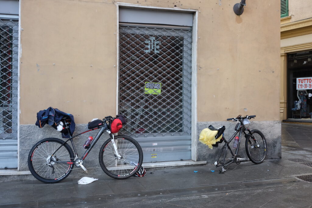 Esimesed kilomeetrid möödusid linnakeskusest välja sõitmisele, liiklesime rahulikult tänavate vahel, peatudes hetkeks vaid ühel tänavaristil, et lasta läbi kohaliku jalgrattavõistluse karavan. Toimus mingi kohalik kriteeriumisõit nagu puhkepäeviti Itaalias tihti näha võib. Vihma tibutas kergelt.