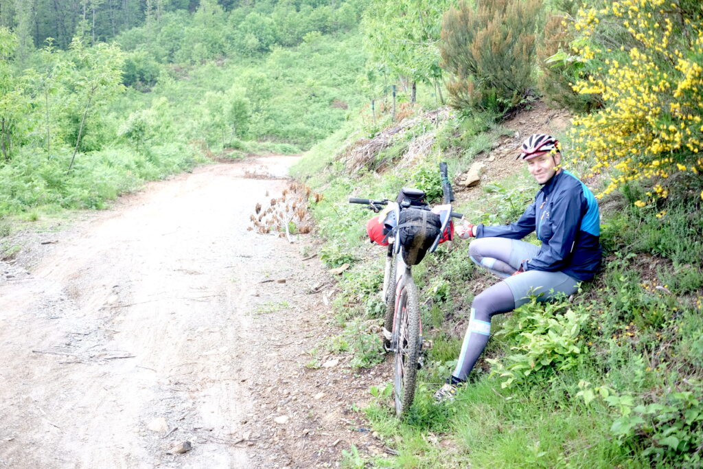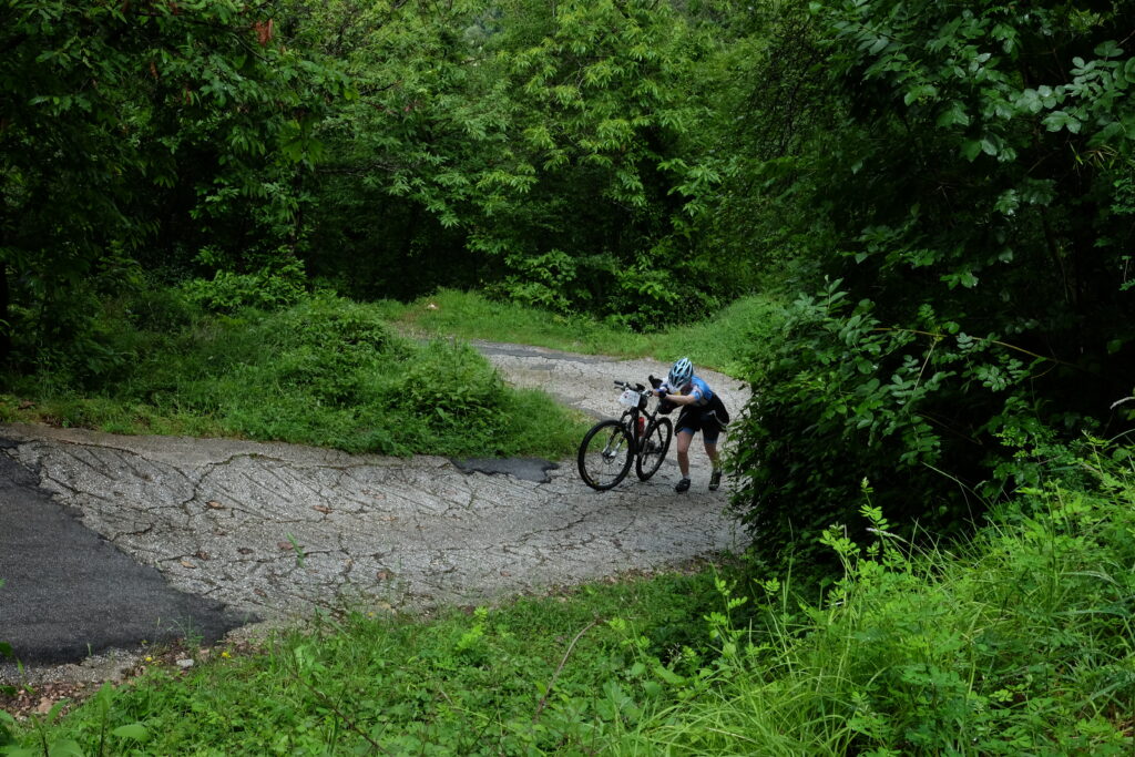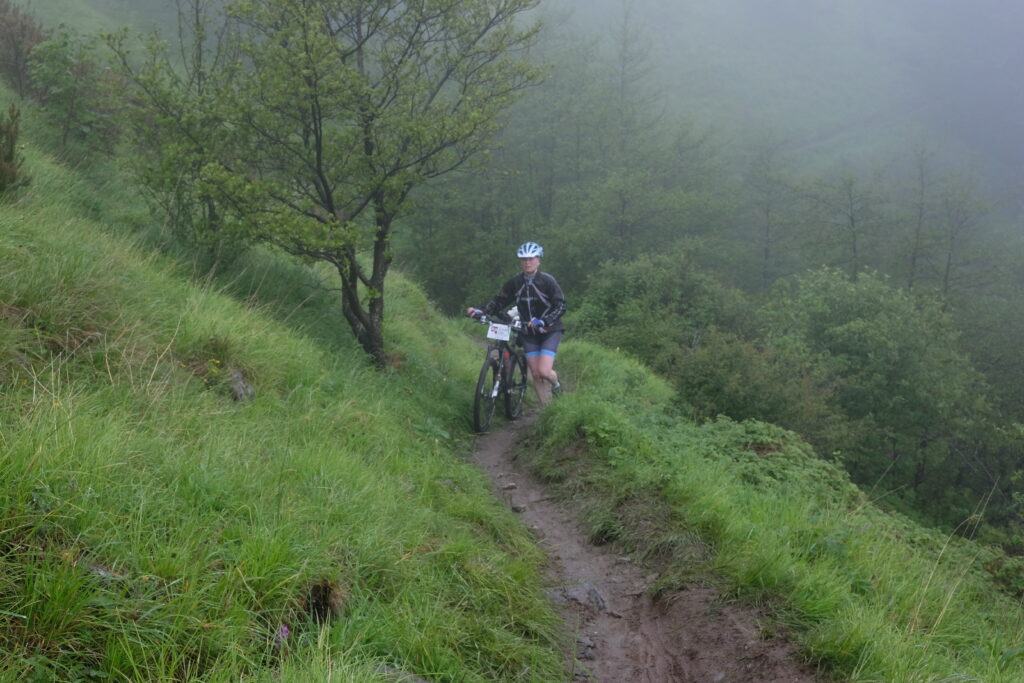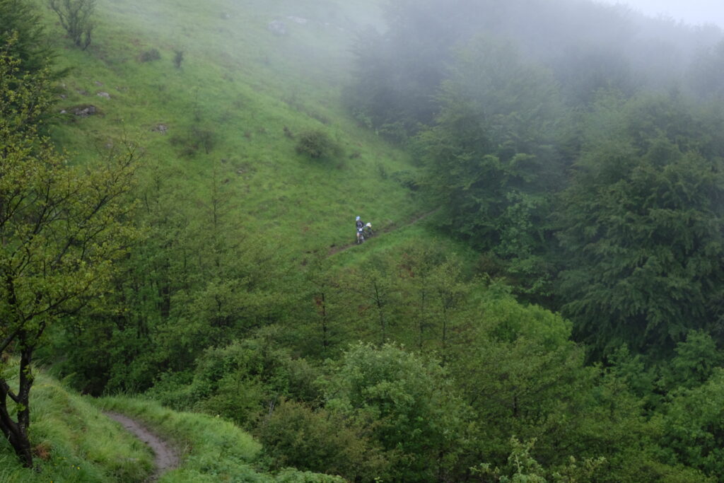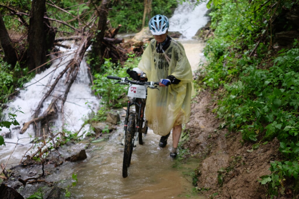 8 tundi oli möödunud stardist kui me olime seljatanud ka järgmise, 940 m kõrge mäekese ja ees ootas pikk laskumine. Olime liikunud mägede tippudes mööda radu umbes 15 km ja nüüd ootas ees ca 20 km jagu laskumist. Sinna vahele jäi mitu mõnusat seika. Laskumise esimene osa oli järsem ja tehnilisem, mööda kohalikke jalgradu ja mõnes kohas olid kevadveed raja üldse ära viinud või olid leidnud omale uue voolusängi otse rajal! Nii olimegi olukorras, kus ülalt sadas vihma ja alt pritsis ka korralikult peale.