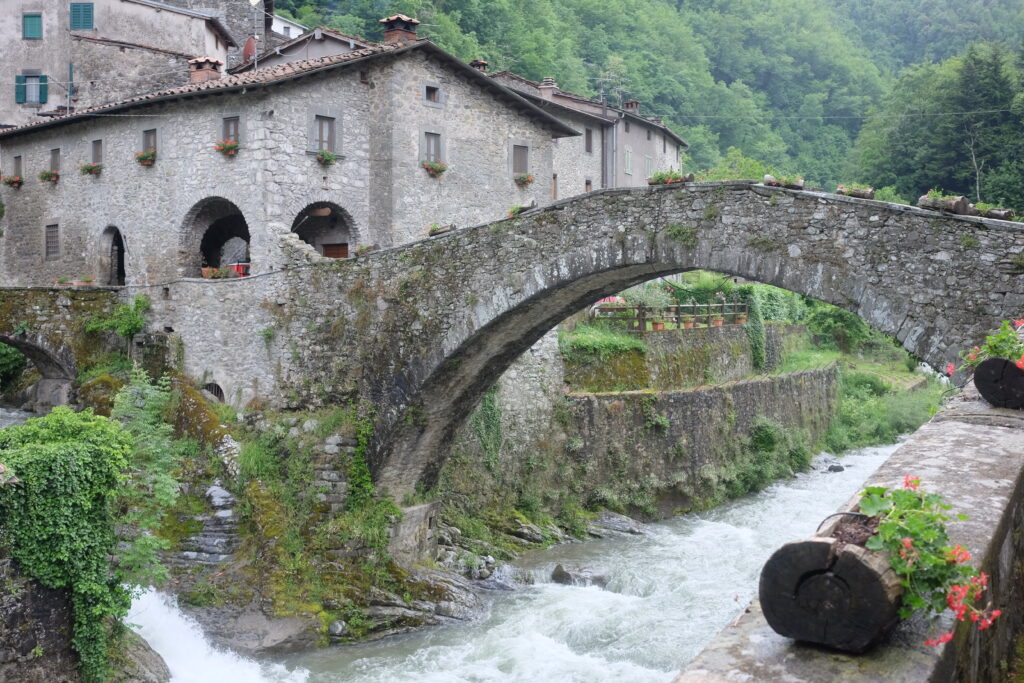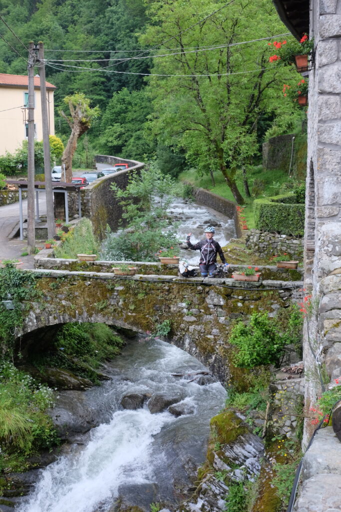 Laskusime edasi kuni ühtäkki avanes alla orgu jõudes muinasjutuline vaatepilt – Fabbricche di Vallico külake koos üle jõe viiva, uhkelt kaarja sillaga. Ohkisime ja ähkisime sealt imestusest mitu minutit ja proovisime seda imeilusat vaatepilti jäädvustada iga nurga alt. Mõistsime ühtäkki millisesse imelisse seiklusesse me oleme sattunud. Veidi ajalugu uurides saab teada, et see 14. sajandist pärit sild, mis on kasutuses veel tänagi, oli kunagi piiriks Modena hertsogiriigi ja Lucca vabariigi vahel ning silla küljes olev maja ei olnud miski muu kui kunagi kahe riigi vahel olnud tolliamet. Kes kunagi sinna piirkonda satub, pange see nimi omale kirja, soovitan kindlasti seda kohta külastada. Autoga on see veidi tüütu, sest külakesest edasi läheb ainult jalgrada üle mägede ja seetõttu peab sõitma edasi-tagasi.