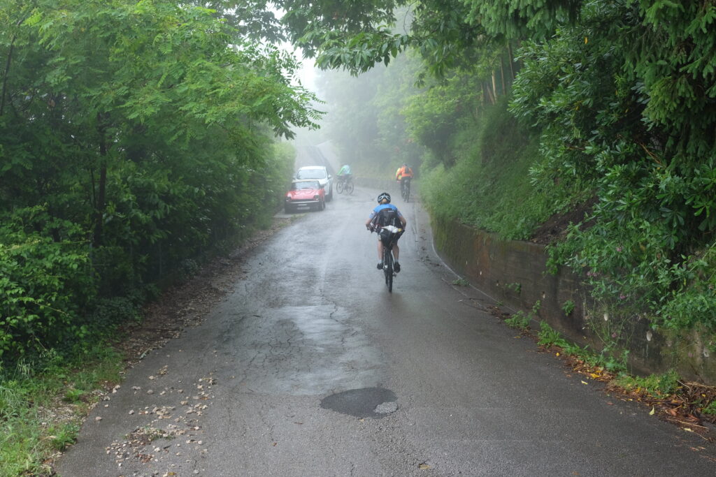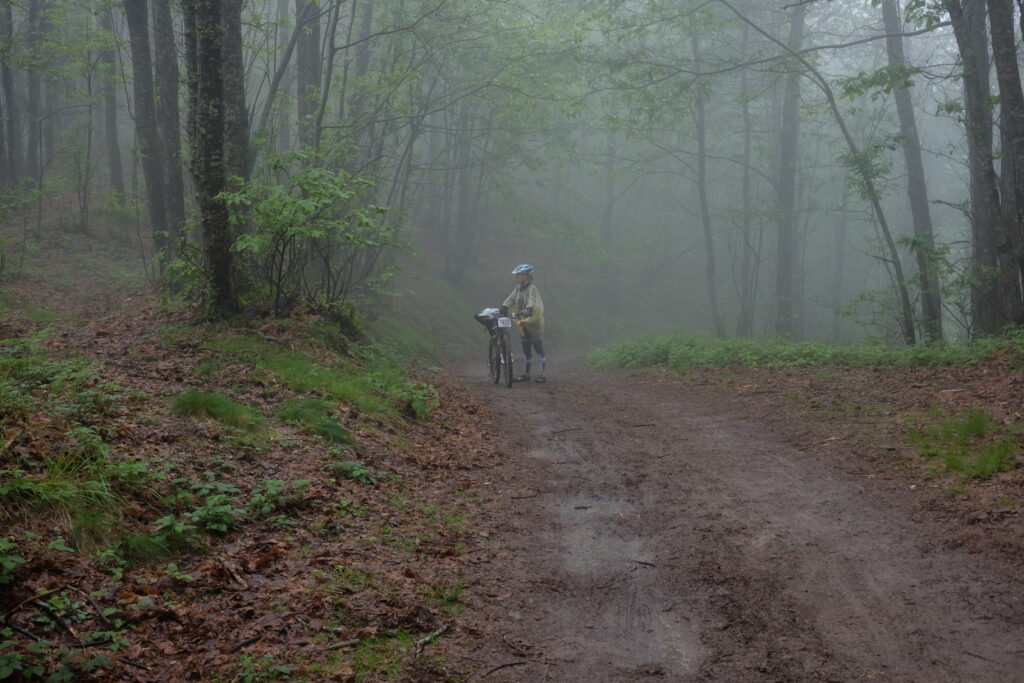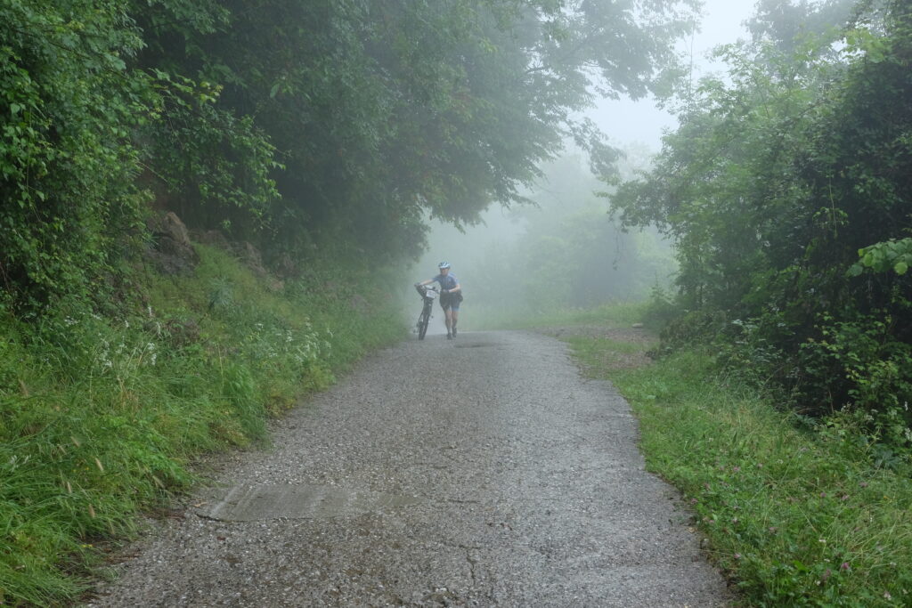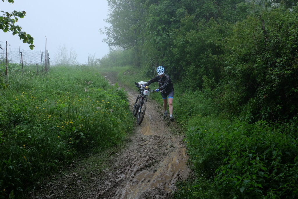 Monte Ciurlaglia tippu jõudes lootsime salamisi leida veidi leebemat profiili ja kergemat veeremist, kuid tegelikkuses ootas meid mudaseks sõidetud kivine singel, mida mööda liikumine, eriti Katil, oli suhteliselt vaevaline. Vihma sadas.