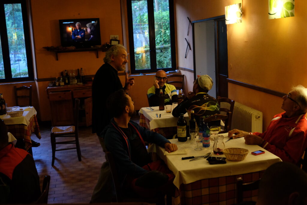 Kui olime jõudnud 400 m kõrgusele Metato külakesse, õnneks mööda asfalti, katkestas meie tee päästeameti auto. Äsja lõppenud vihm ja tuul olid teinud oma töö ning langetanud teeäärselt nõlvalt ühe puu täpselt risti üle tee. Mootorsaag juba õnneks undas päästeteenistuja käes ning auto taha oli kogunenud lõbus pealtvaatajate punt, mis koosnes šotlastest, waleslasest ja ühest Londoni lähistelt pärit mehest, keda võis kutsuda inglaseks. Kahte esimest rahvusgruppi ei tohi mingil juhul inglasteks kutsuda – esimene kord ehk antakse andeks, aga teist korda võib juba asi tõsisemaks minna. Samuti vaadatakse väga viltu kui küsid meeste käest kas nad on UK-st? Ei, me ei ole UK-st ega Inglismaalt on kindel vastus. Kogenud bikepacker Alan, juhuslikult sama mees, kes laenas mulle stardis pumpa, oli kolinud Walesist Põhja-Itaaliasse ning oli paras lõuapoolik hoides verbaalselt seltskonna tuju üleval. Põhiliselt sai muidugi aasitud meest, kes elas Londoni lähistel ja kes mägede puudumisel pidi trenni tegema vastu tuult. Kui ma siis neile rääkisin oma kodumaa kõrgeimast tipust ja tüüpilisest maastiku profiilist, ei hakanud mind muidugi narrima keegi, pigem vaadati austusega ja eriti just Katit.