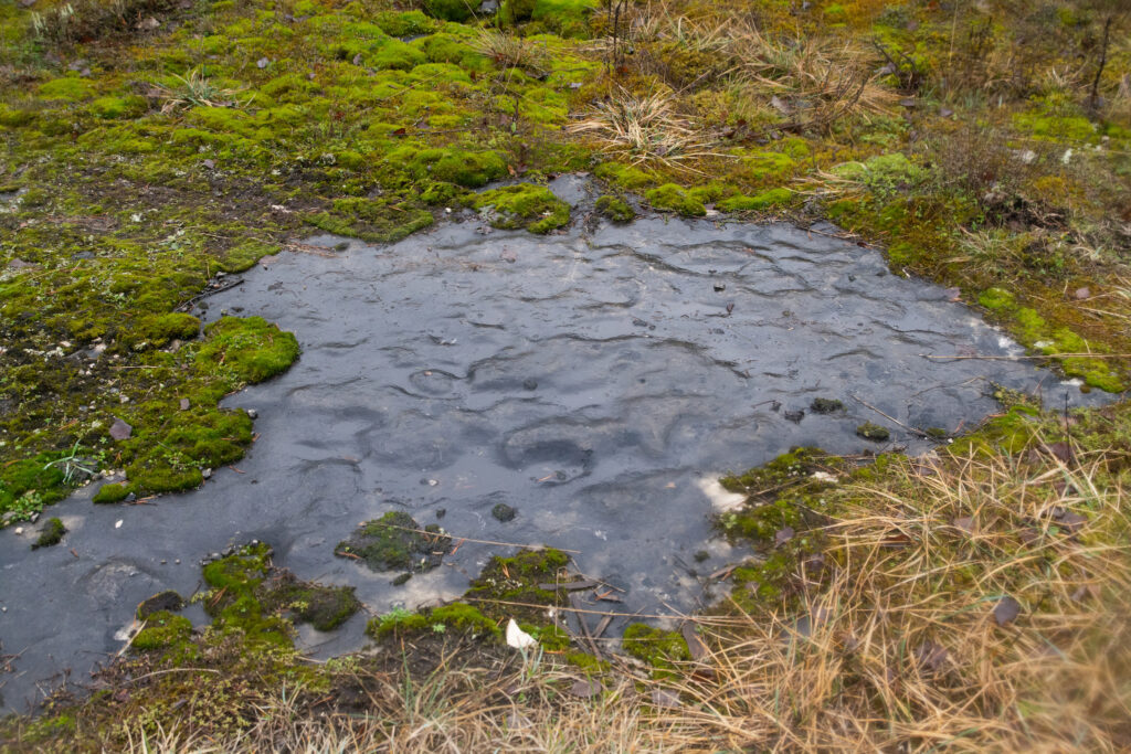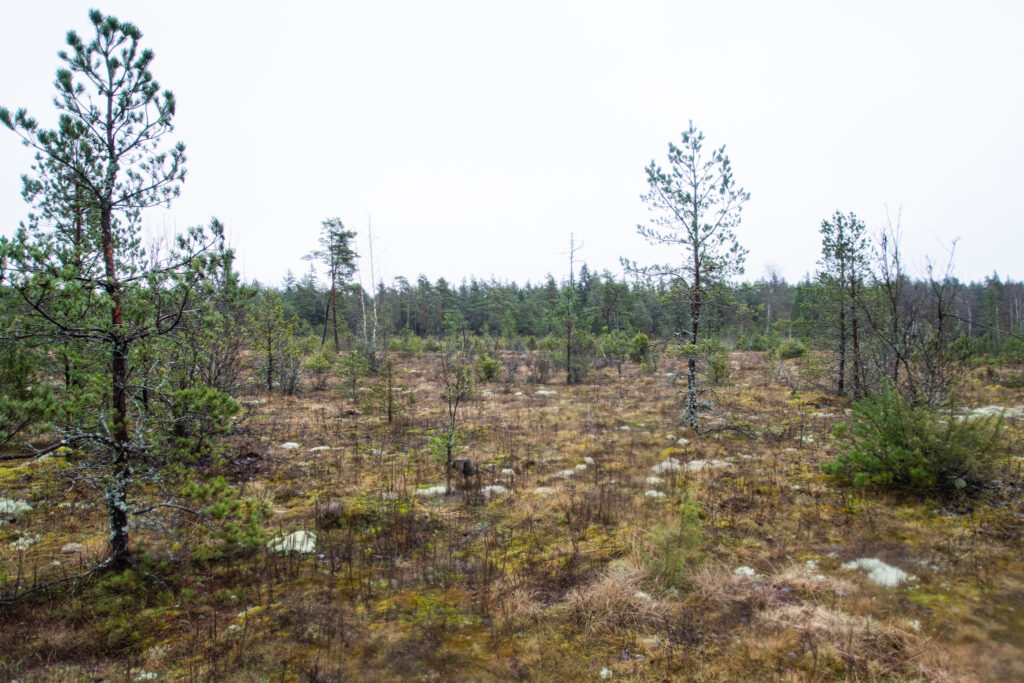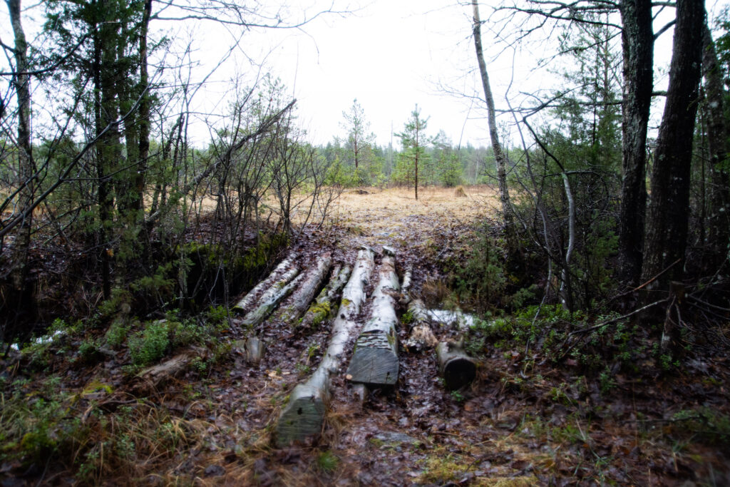 Mets oli õnneks üsna hästi läbitav. Väike viivitus tekkis vaid üht laia kraavi ületades, kus ma kahe poolpehkinud lepa abil oma purde ehitasin. Kuid 90 kg on ikkagi 90 kg ja pehkinud lepa kaalupiirangust oli see kaugelt üle. Vajusin ühe jalaga vette, kuid suutsin end mingi ime läbi teisel pool kraavi kasvavale viltusele lepale haakida. Veekindel sokk tegi oma tööd tõhusalt, tundsin vaid, et korraks lõi soki ümbert jahedaks, kuid jalg jäi kuivaks.
