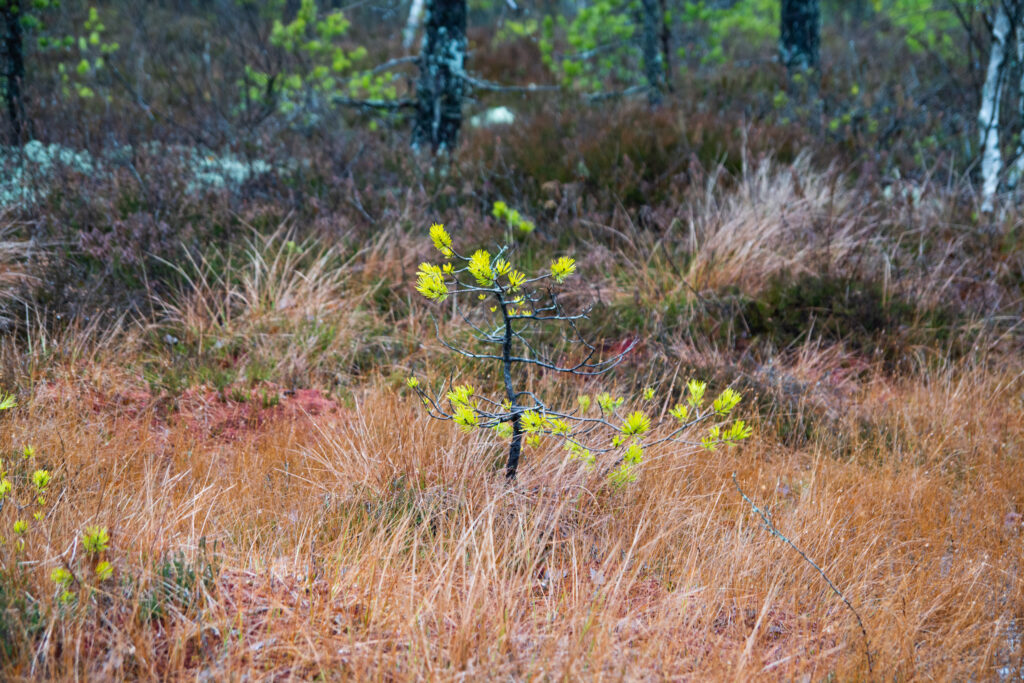 Isegi rabamände võis näha erinevas toonis okastega. Need, kes saatuse tahtel on omale elupaigaks saanud üksiku mätte keset laugast, ei suuda toitainevaesest ja pea olematust pinnasest piisavalt jõudu ammutada, et oma okkaid roheliseks värvida. Kollakate okastega männid kõrvuti oma jõukamate liigikaaslastega viljakamal pinnasel, vaid paar meetrit eemal.