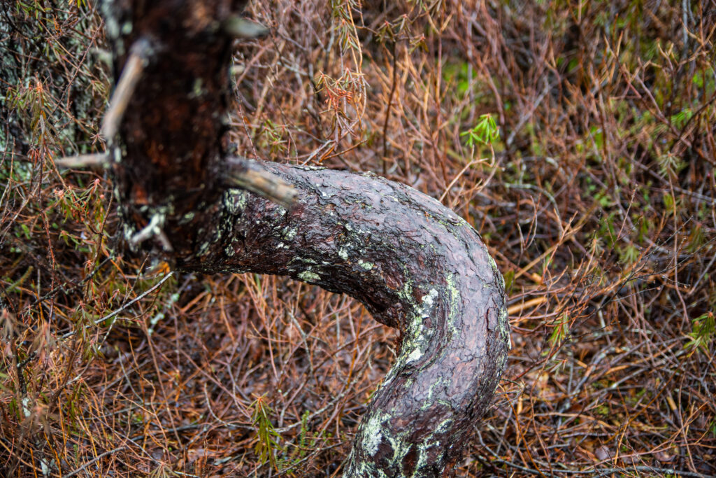 Mõnele männile on vanajumal juba noorena vingerpussi mänginud ja nii ta seisab nagu kõverik Quasimodo oma sirgete, kuid siiski kidurate sõprade kõrval.