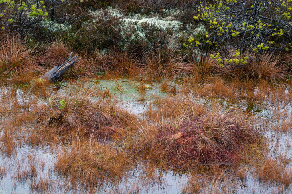 Üsna kiiresti olin veendunud, et hallist talvest on raba kaugel. Värviküllus on imetlusväärt. Mõned kontrastid köidavad pilku lausa pikemaks ajaks. Jalutasin aeg ajalt laudteest paarkümmend meetrit eemal, raba piiril, seal kus veel päris sisse ei vajunud. Mul ei olnud matkasaapaid ega kummikuid, vaid tavalised gore-tex Salomoni maastikujooksu tossud ning igaks juhuks ka veekindlad sokid. Plaan ei olnud kuhugi sukelduda, kuid esimese ehmatuse võiks kuiva jalaga üle elada.