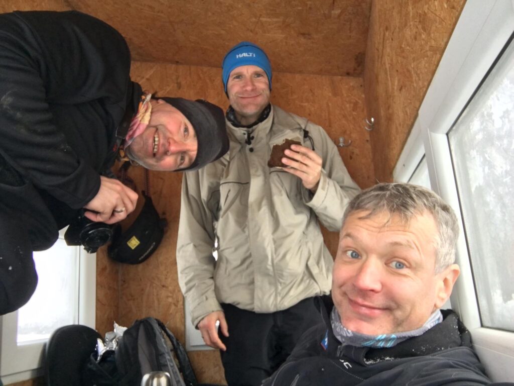 Sõõgid naha vahel, ei jäänud me sinna leiba luusse laskma, ruumi selleks nagunii polnud. Olemine kiskus juba üsna niiskeks ses tillukeses putkas, ventilatsiooniks oli kasutuses irvakil aken. Pakkisime oma kodinad kokku ja liikusime suuskadel edasi, esialgu mööda lumist teed. Õige pea pidime keerame üle lagendikku, et murda läbi metsa Naisteraba suunas, kuid õnneks oli keegi hea inimene saaniga täpselt õiges suunas raja sisse sõitnud. Metsas viis saanijälg ühele tillukesele lagendikule, kus oli järgmine jahitorn, ikka sama stiiliga – pakettaknad igas suunas ja kõrgus maapinnast ka vastavalt kohalikule standardile. Lagendikult edasi raba poole viis metsasiht, kus saanijälg jätkus ja vähemalt järgmiseks pooleteistkümneks noolsirgeks kilomeetriks oli elu nagu lill.