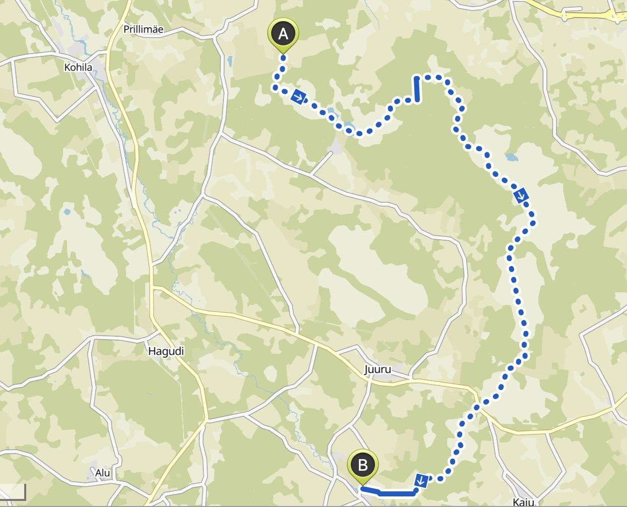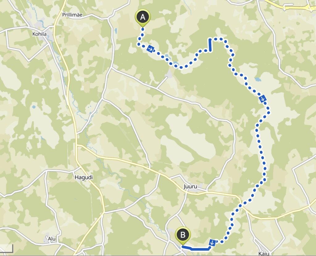 Maa-ameti ortokaardi järgi valmis Priidul marsruut, millel pikkust pea 33 km. Ettevalmistatud suusarajal läbiks selle veidi üle kahe tunniga, kuid raskel maastikul eeldasime liikumist umbes 4 km/h. Ees ootas terve päev suuskadel.