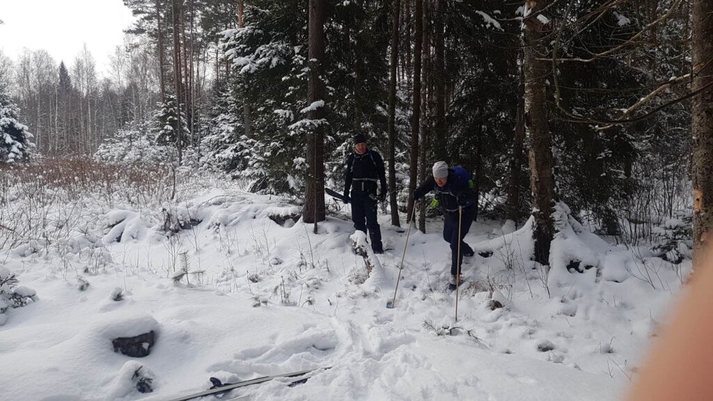 Ragistasime tihedas võsas suuskadega mitusada meetrit enne kui saime aru, et meist paarkümmend meetrit eemal jooksis meie liikumissuunaga paralleelne metsasiht, mis oli hästi läbitav. See oli suur kergendus, hammustasime tüki magusat, rüüpasime lonksu sooja jooki ja suusatasime edasi.