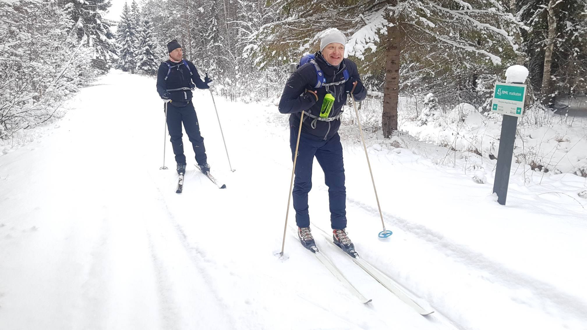 Matkasuuski mul ei ole. Õnneks oli telefonikõne kaugusel sõber Villem, kel seisab jõude terve komplekt varustust talvise maastiku vallutamiseks – suusad, kepid, saapad. Kõik kvaliteetkraam, tuntud brändid, hoole ja armastusega valitud. Priidul ja Paavol seda muret ei olnud, neil on matkasuusad aastaringselt käe ulatuses.