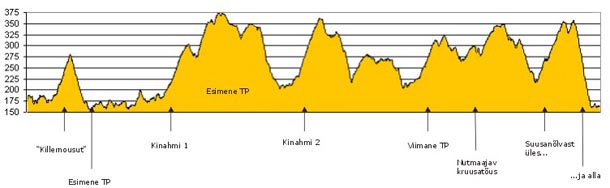 Lihtsalt naljakas on jälle tõdeda, et piisab alates sajastkonnast km Eestist põhja poole ja on olemas selline maastik, mis võib niimoodi üllatada. Hakkab ju kaljune maastik juba Helsingist peale. Arusaamatu on ka see, et kuidas saab sõita rattaga võistlustempos kohati 6 km tunnis. Just selline oli tempo Kinahmi I tõusule järgneval mäetipul liikudes.