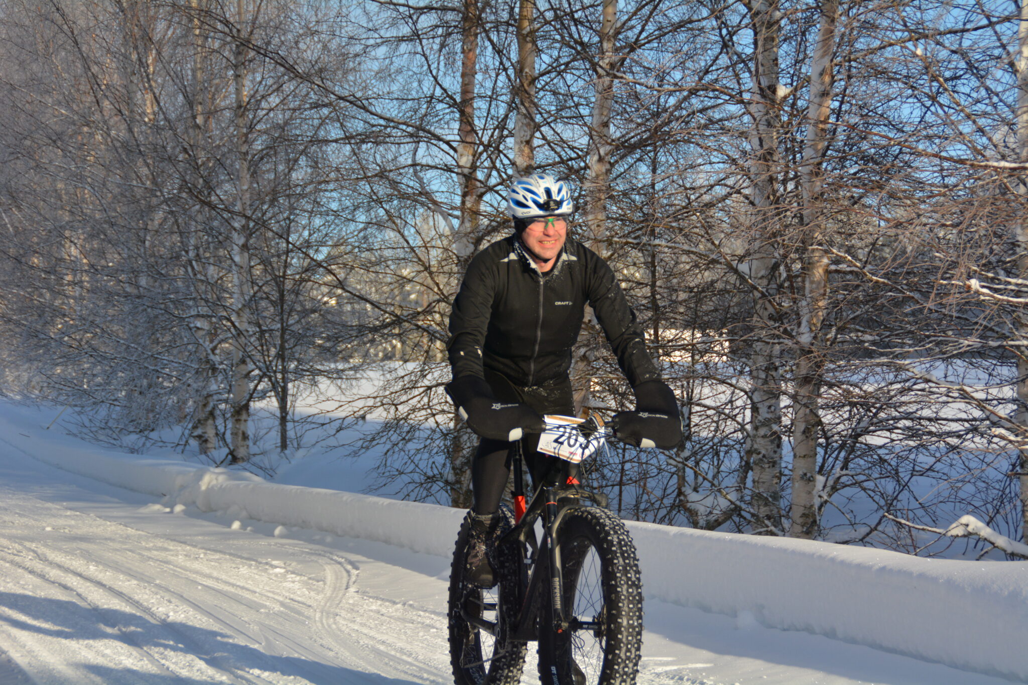 Rada oligi hea. Oli pikka lauget tõusu. mõnusaid laskumisi ja pikki soolõike, kuid jälg oli tugev ja seier tiksus ikka sinna 20 km/h poole. 60. kilomeetril pööras rada ringile, mille enne olid läbinud 24 km fatbike sõitjad. Kogu ratturitele jäetud rajaosa oli segi keeratud. Ilmselgelt oli keegi ees sõitnud oluliselt suurema rehvirõhuga, sest sisse oli sõidetud sügav sinka-vonka vagu, milles sõita oli võimatu. Lisaks oli keegi seal kõndinud ja vajutanud rajale sisse sügavad saapajäljed. Sõitsin, või õigemini proovisin sõita mõnisada meetrit. Selle ajaga kuumenesin täiesti üle, higi voolas mütsi alt juba näole kui sain aru, et see ei ole kehv lõik. See ei ole ajutine lugu siin. Selline jama kestab ju lõpuni! 20 km võimlemist ootab ees! Kiirus oli hädised 10-11 km/h kui ma ussina lookleva laia vao kõrvalt kõvemat pinda proovisin leida. Vahel oli abiks eessõitnud Jukka jälg, mille rehvimuster oli mulle läbitud 60 km jooksul juba pähe kulunud. Kuid näha oli, et ta on otsinud samamoodi sõidetavat trajektoori rikutud rajal ja vähemalt veidi oli see mulle abiks. Aitäh Jukka sellegi eest! Kilomeetrid läksid väga visalt. Mingil hetkel sai hoog üles, kuid vakku sõitmine lõppes jälle sellega, et panin jala maha, sest lenks läks risti. Ratta selga, trajektoori jälgimine – kas siit saab läbi? Ei saa ju kurat! Jälle jalg maha. Uuesti ratta selga, paarsada meetrit saab jälle sõita kuni jälle lenks on risti. Jälle maha rattalt. Kirusin mõtetes seda rehvikuningat, kes siin vagu oli kündnud ees. Kurat – korraldaja ju ütles, et “pehmeä latu – pehmea rengas”. Peaks vist selle juhendisse kirjutama järgmisel aastal. Kui 10 km akrobaatikat oli läbi, jäin korra seisma ja manustasin ühe stardipaketis olnud maasikageeli. Oli hea magus suutäis küll. Ülakeha hakkas andma vaikselt juba märku, et mees lõpeta see võimlemine, sõita on vaja. Kui umbes 5 km oli veel jäänud, siis tuli pähe isegi mõte, et tuleks üldse rattalt maha ja kõnniks lõpuni. Kõndida ma ju jaksan, sõita ka jaksan, kuid sõidu imiteerimine koos koordinatsiooni- ja jõuharjutustega – see imeb kõik mahlad välja. 3 – 4 korda kukkusin raja kõrvale pehmesse lumme, sest olin hooga jälle kuskile pehmesse auku või vakku sõitnud. Kuna lund oli ikkagi raja kõrval pea meetri jagu, siis enda püsti ajamine sealt oli omaette kunst. Kuskile ju toetada ei ole kui külitad seal üleni lume all, ainult kiiver paistab august välja. Toetad käe lumme, et end püsti ajada ja…vajud käega veel sügavamale. Ikka tsirkus kogu raha eest. Tahaks kellegile kaevata, aga kellele sa kaebad, et sa ise nii loll oled, et rattaga talvel metsa ronid? Suusatajad tõenäoliselt ei saanud arugi, et sel lõigul midagi häda on, kuigi mõnes kohas olid ratturid ka suusaraja segi pööranud.