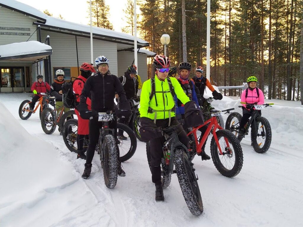 Kell hakkas vaikselt 9-le lähenema. 28 julget suusatajat, kes olid valinud pikima, 160 km distantsi, olid alustanud siitsamast keskusest ja olnud rajal juba pea tunni. Tunnistan ausalt, et mul omal oli tegelikult suurem kihk proovida seda rada suuskadel, kuid 0 suusakilomeetrit sel talvel kainestasid olukorda piisavalt ja nii ma leidsingi end stardirivi teisest reast fatbike-l koos 14 teise ratturiga. Kalervo Kaltio võttis õnneks stardist ka mõned pildid ning “kolme, kaksi, yksi – lähtö” ja veeresimegi keskuse parklast minema.